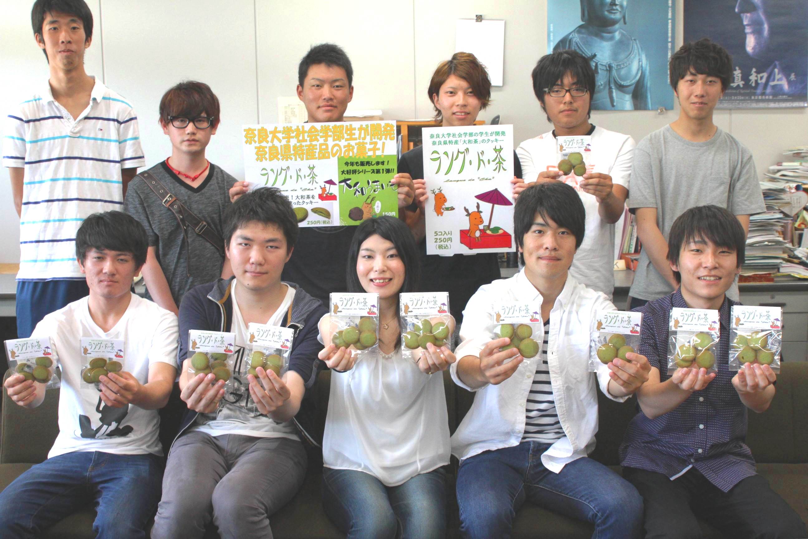 県特産の大和茶を使ったお菓子「ラング・ド・茶」を奈良大の学生らが商品化し、販売を始めた。4年前に商品化した大和いもを使ったスナック菓子「大和うまいも」も継続販売しており、県特産物のおいしさをPRする。