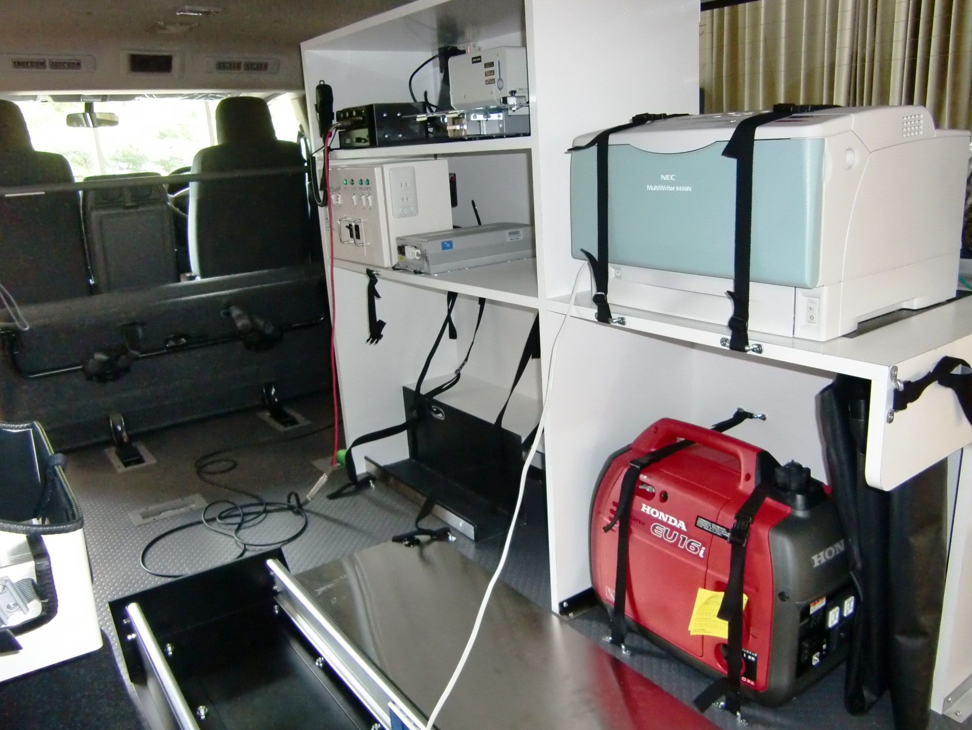 発電機や防災無線なども備え、災害時は「移動救護所」としての活用や、救援物資、被災者の搬送も可能。試験運行は9月中旬~10月末で、市職員と保健師が乗り込み、中心部から遠い7地区の公民館や集会所を週1回訪問。サービスを提供する。
