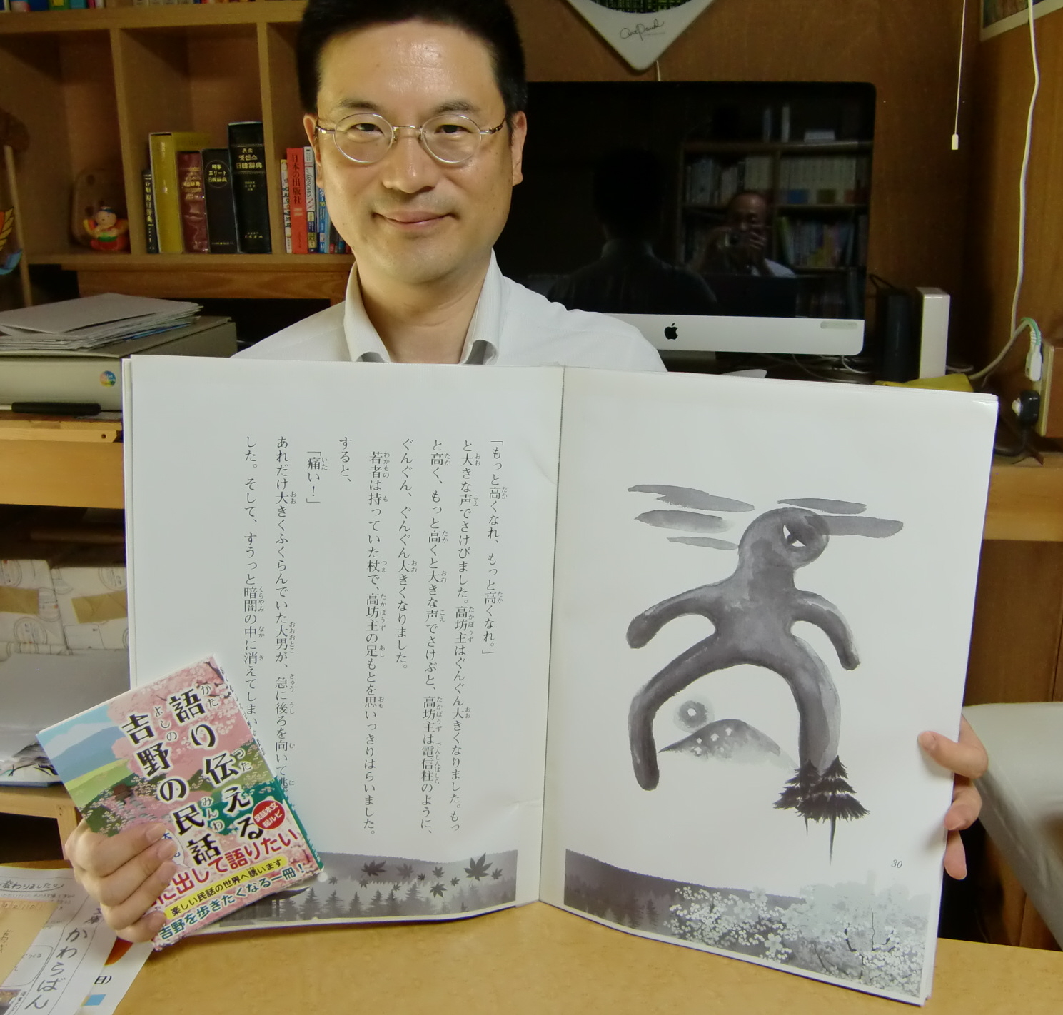 「語り伝える吉野の民話」は、吉野地域の16の民話を収めたもので、昨年5月に同社が発行。吉野の歴史や名所旧跡などの紹介や挿絵をつけ、子供にもわかりやすくまとめている。