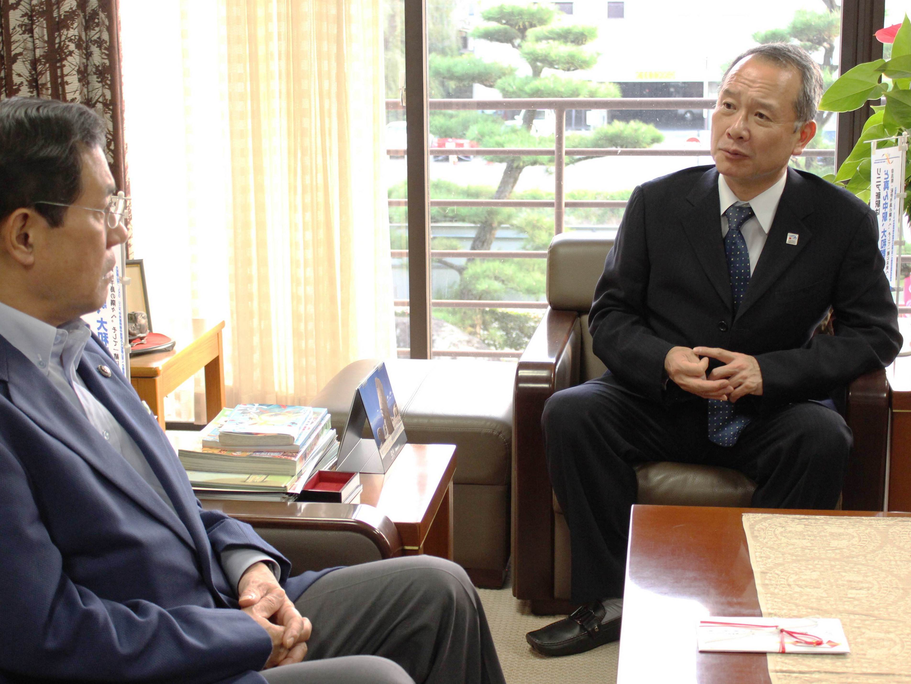 10月30日、同協会の菊池攻会長が、協議会の会長を務める上田清市長を訪問。菊池会長は「交通事故が原因で学業に困る子供たちが、成人するまで有効活用してもらえれば」と話した。上田市長は、昨年12月以降の市内の交通死亡事故件数がゼロ件であることを紹介、「今後もゼロを更新できるよう、協会の力をお借りしたい」と話した。