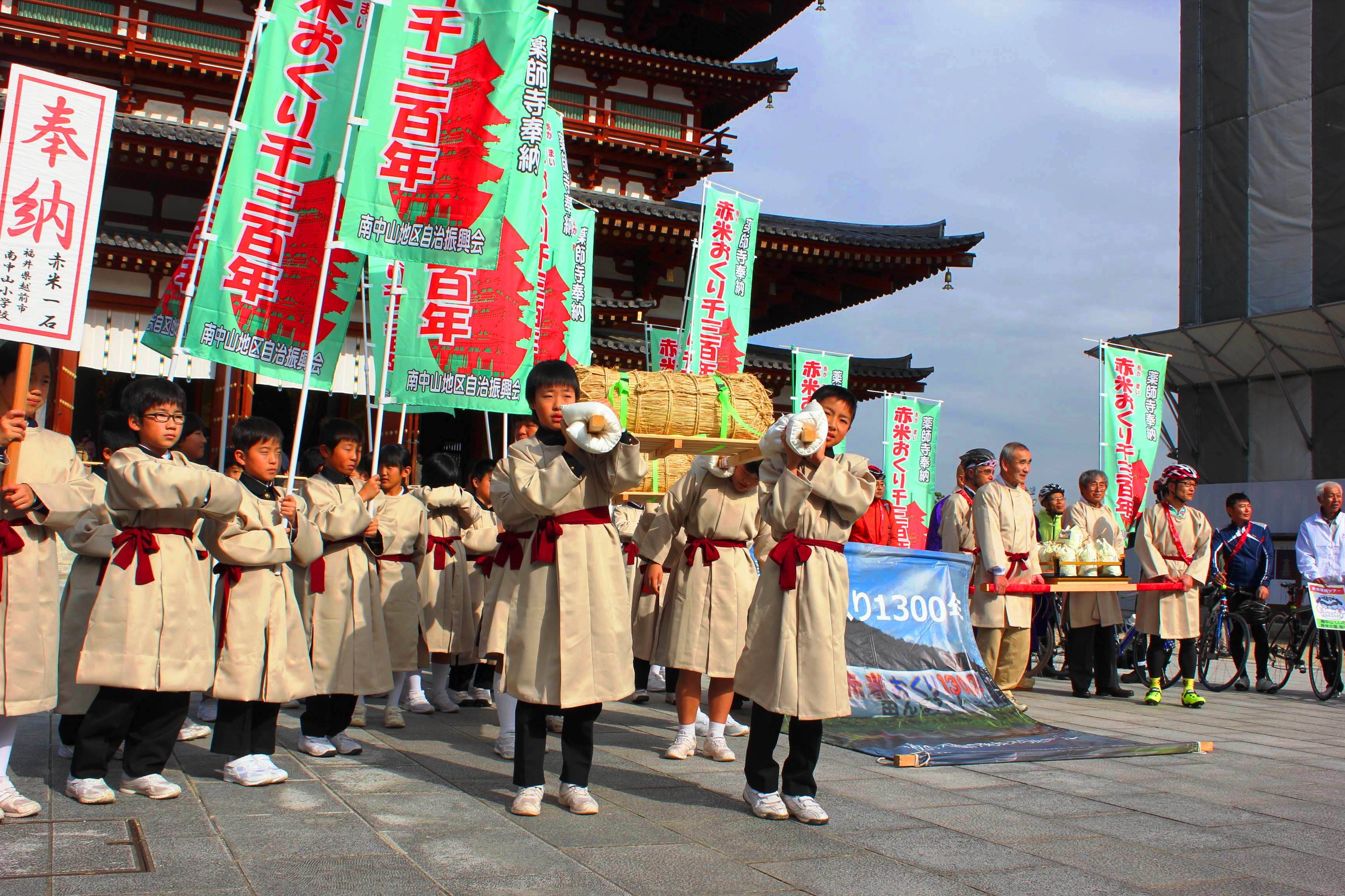 薬師寺に福井から人力で赤米届いた 1300年前を再現