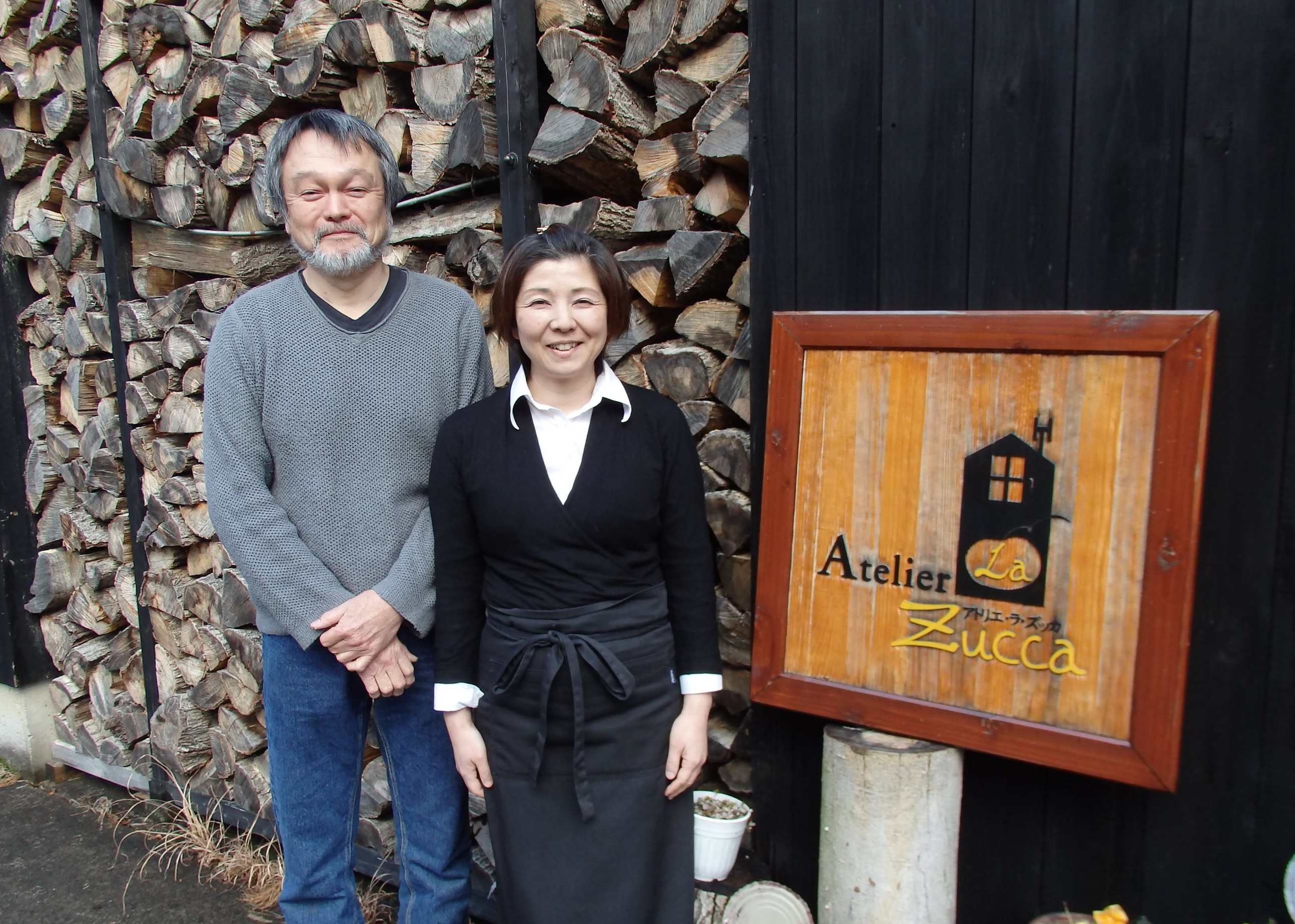 鼎さん夫婦は豊かな自然に魅せられて平成11年、大阪市から丹生町に移り住んだ。その2年後、大阪市内でイタリア料理店を開店、当初は丹生町から通っていたが3年前、その店は家族にまかせ、丹生町で新たに「アトリエ・ラ・ズッカ」(ズッカはイタリア語でカボチャの意味)をオープンさせた。