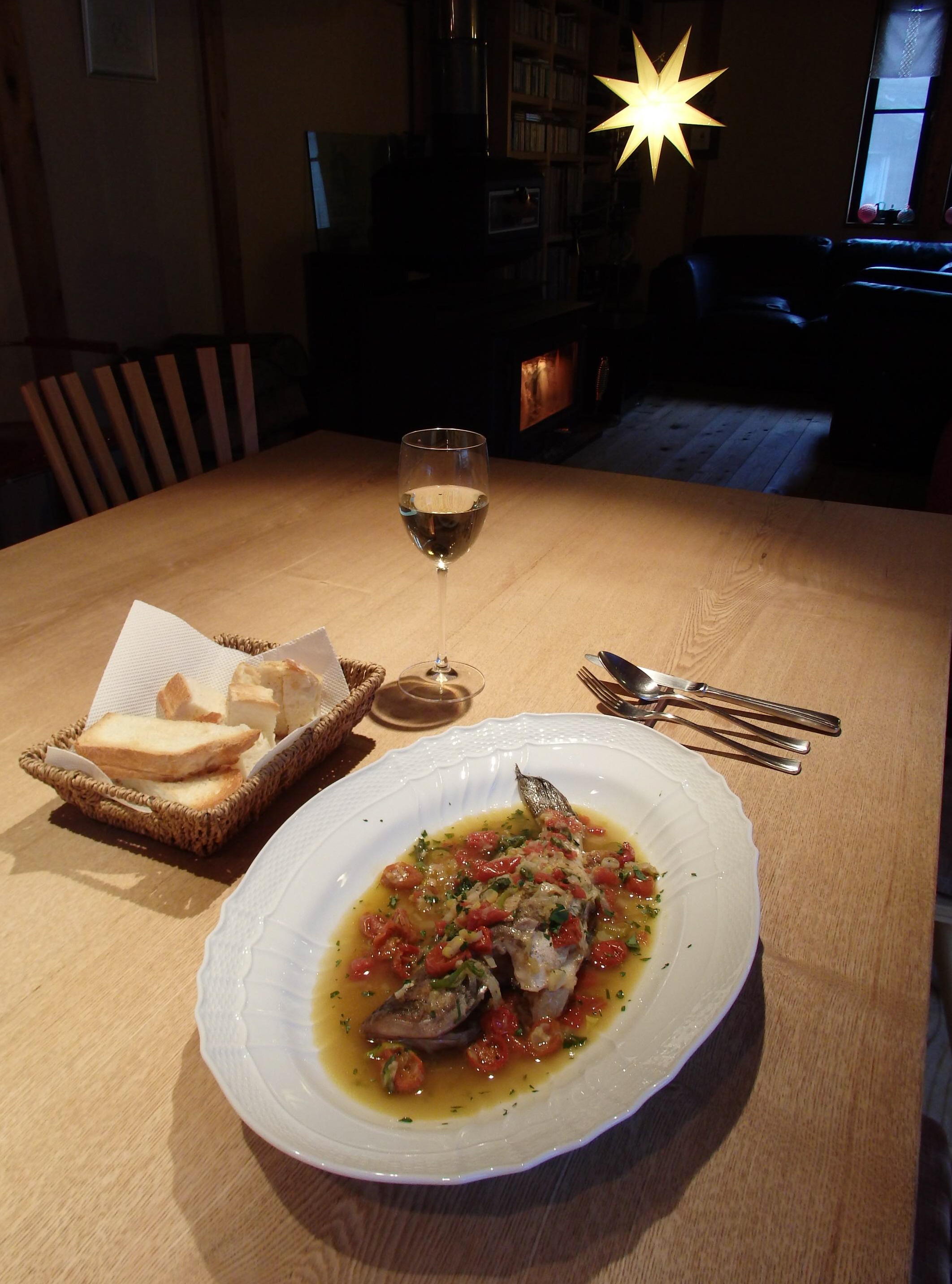 冬の旬の料理のひとつが「ハタのアクアパッツァ」。白身魚のハタをオリーブオイルで炒めて、地元産のネギやトマトと一緒に煮込む。イタリア漁師が船の上でつくるシンプルな料理だが、魚と野菜から出たエキスが混じり合って絶妙な味を生み出す。