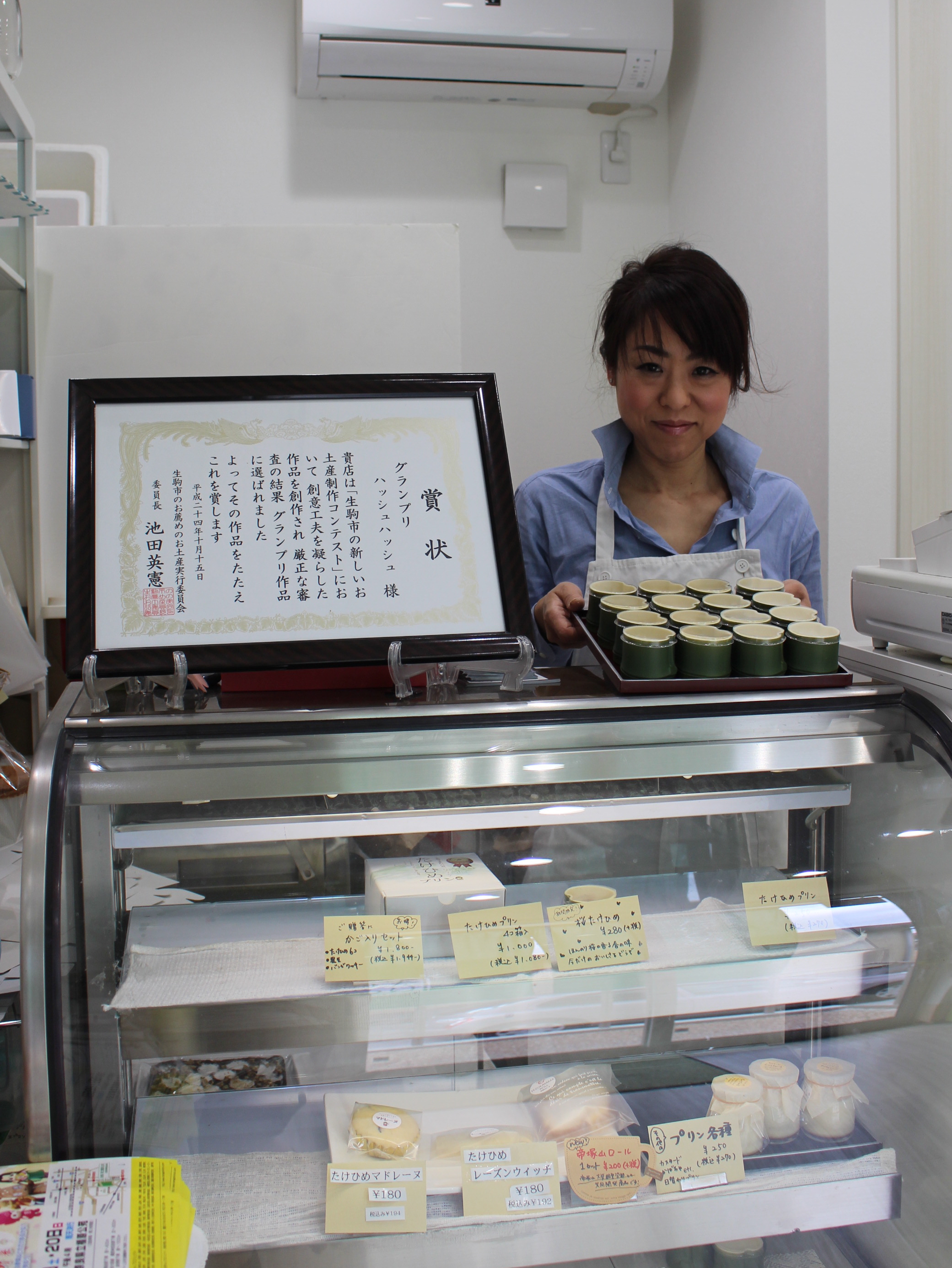 再び大きな転機となったのが、24年に生駒市や生駒商工会議所が実施した「新しいお土産制作コンテスト」だ。黒豆や市内の清酒、酒かすなど素材にこだわり、100回以上試作を繰り返した。難しい酒かすの分量も工夫を重ね、のどごしや食感にこだわった上品な甘みがある「たけひめプリン」を完成させ、見事グランプリを獲得した。