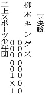 二上スポーツ少年団は、8月に東京都で開かれるマクドナルド・トーナメントに、準優勝の柳本キングスは7月に和歌山県高野町で開かれる第21回記念高野山旗全国学童軟式野球大会にそれぞれ出場する。