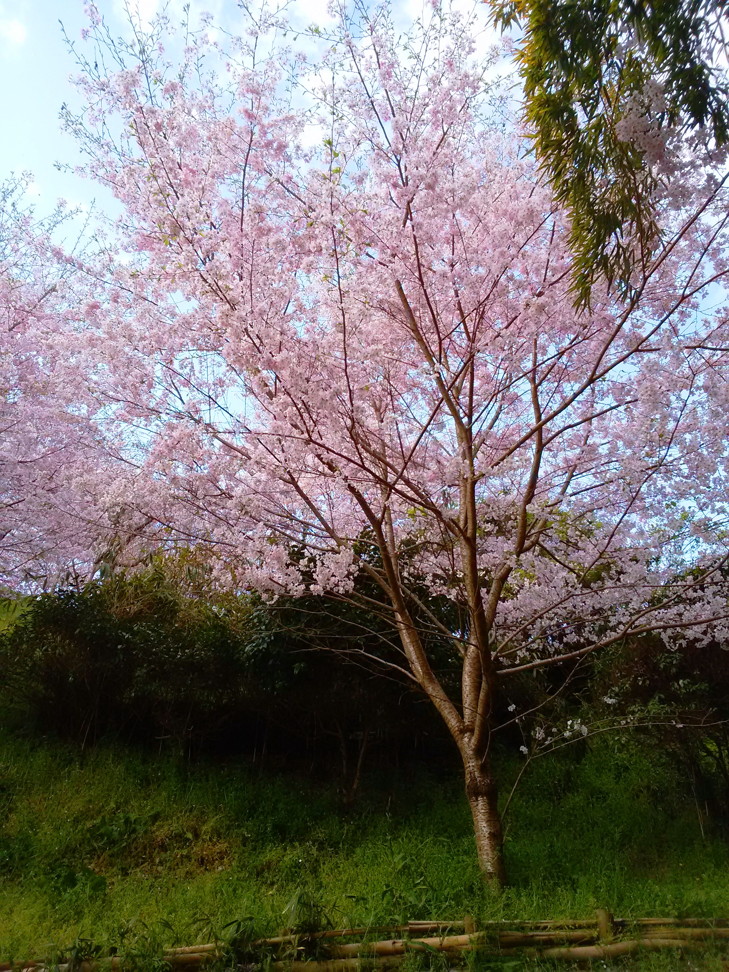 奈良地方気象台は2日、奈良市半田開町の同気象台敷地内にあるソメイヨシノの標本木が満開になったと発表した。平年より3日早い。