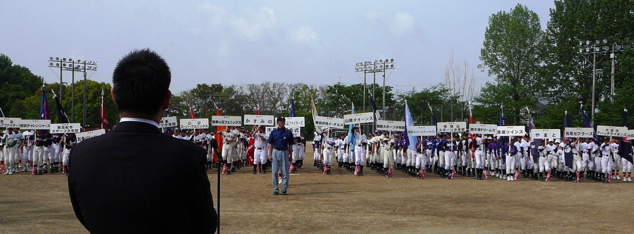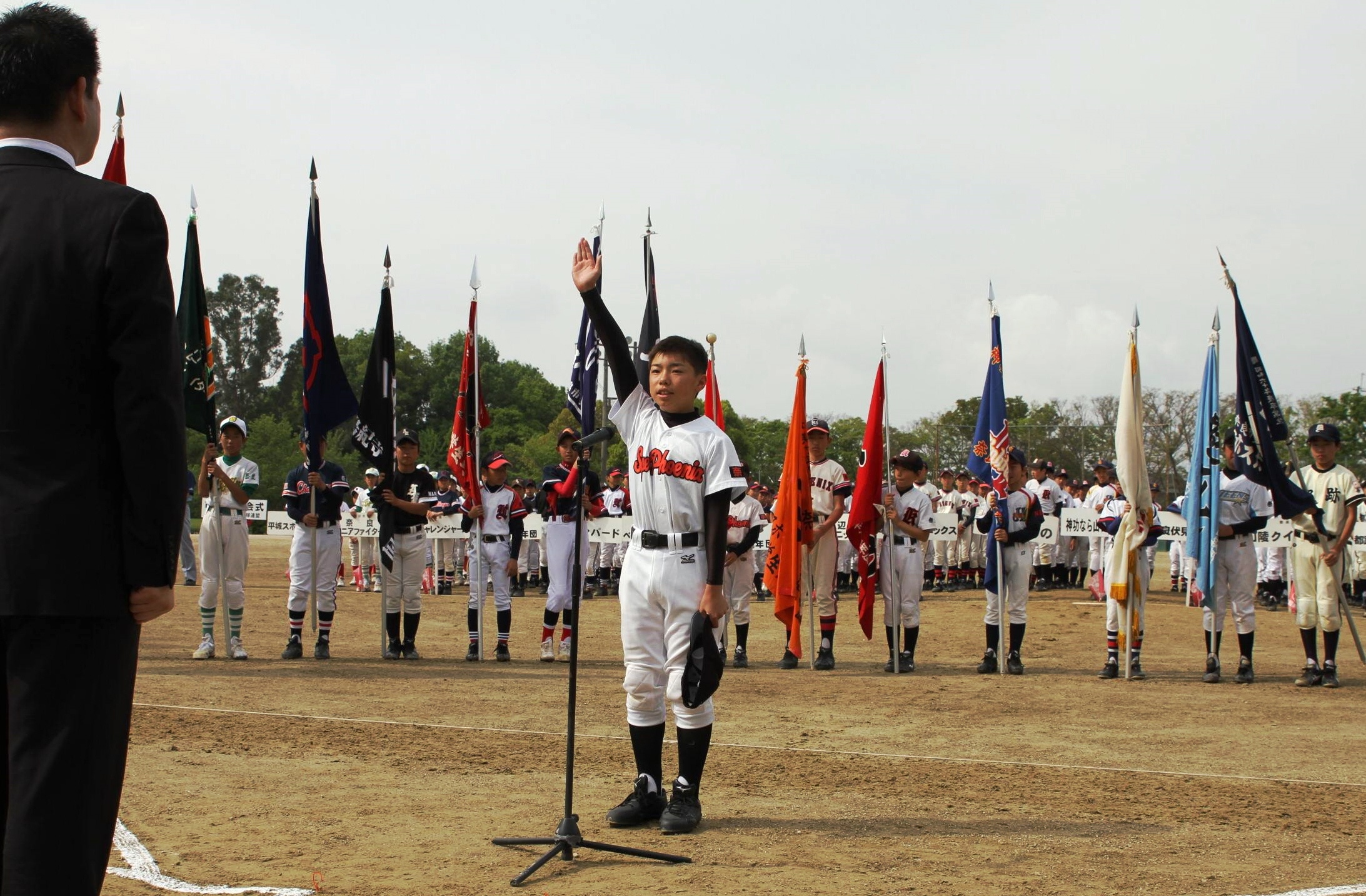 開会式では、仲川げん市長が「仲間と一緒に声を掛け合って白球を追いかけてきた成果を、最大限発揮してください」と激励。山辺スーパーフェニックスの森崎叶大主将(11)は「野球ができる環境を作ってくれる監督、コーチ、両親に感謝し、仲間とともに価値のある1勝を目指し最後まで全力でプレーすることを誓います」と選手宣誓した。