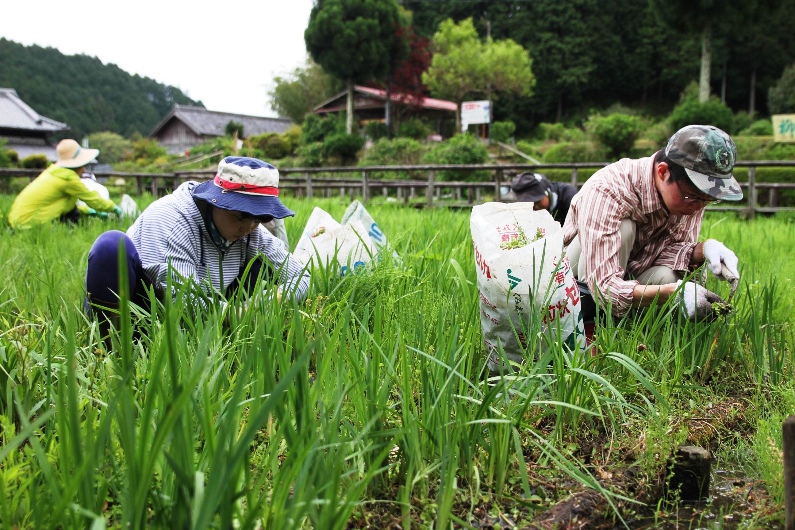 奈良市の「柳生花しょうぶ園」で7日、リニューアルオープンを前に草刈り作業などの体験会が行われ、参加者11人が泥だらけになりながら園内の手入れに取り組んだ。