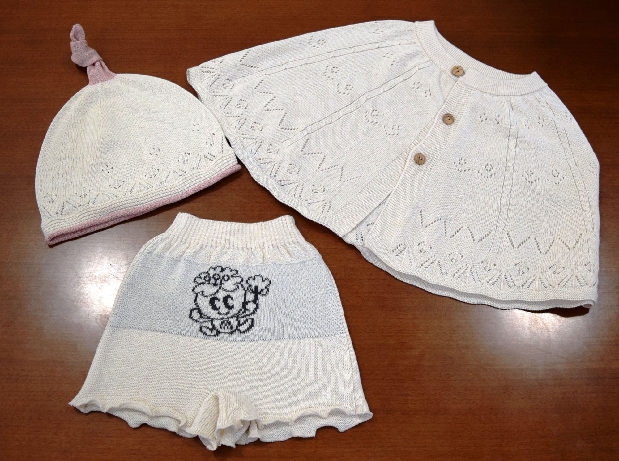 同市出のニットセーター製造会社「髙井ニット」の髙井準雄社長(68)は、さくらコットン事業が始まった約10年前からかかわってきた1人だ。同社は返礼品の1つ、ベビーニットパンツを製造。おむつの上に履かせるオーバーパンツで、市のマスコットキャラクター「みくちゃん」のイラストも編み込みで描かれたかわいらしいデザインだ。