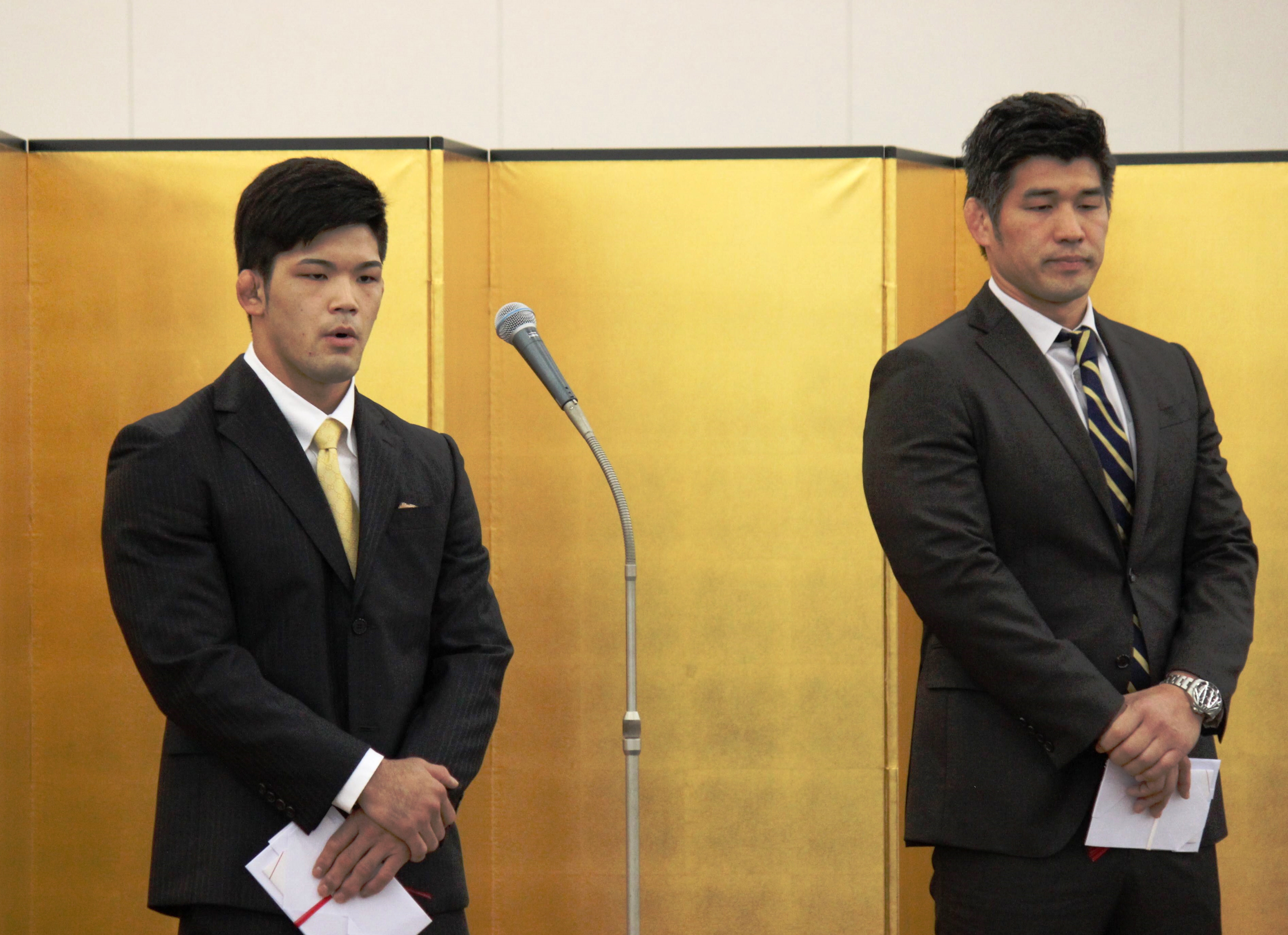 壮行会には、大野選手とともに、全日本柔道男子の井上康生監督も出席。「大野選手は練習の質・量ともに非常にいい状態を作れている。天理柔道の魂を見せてくれると期待している」と激励した。