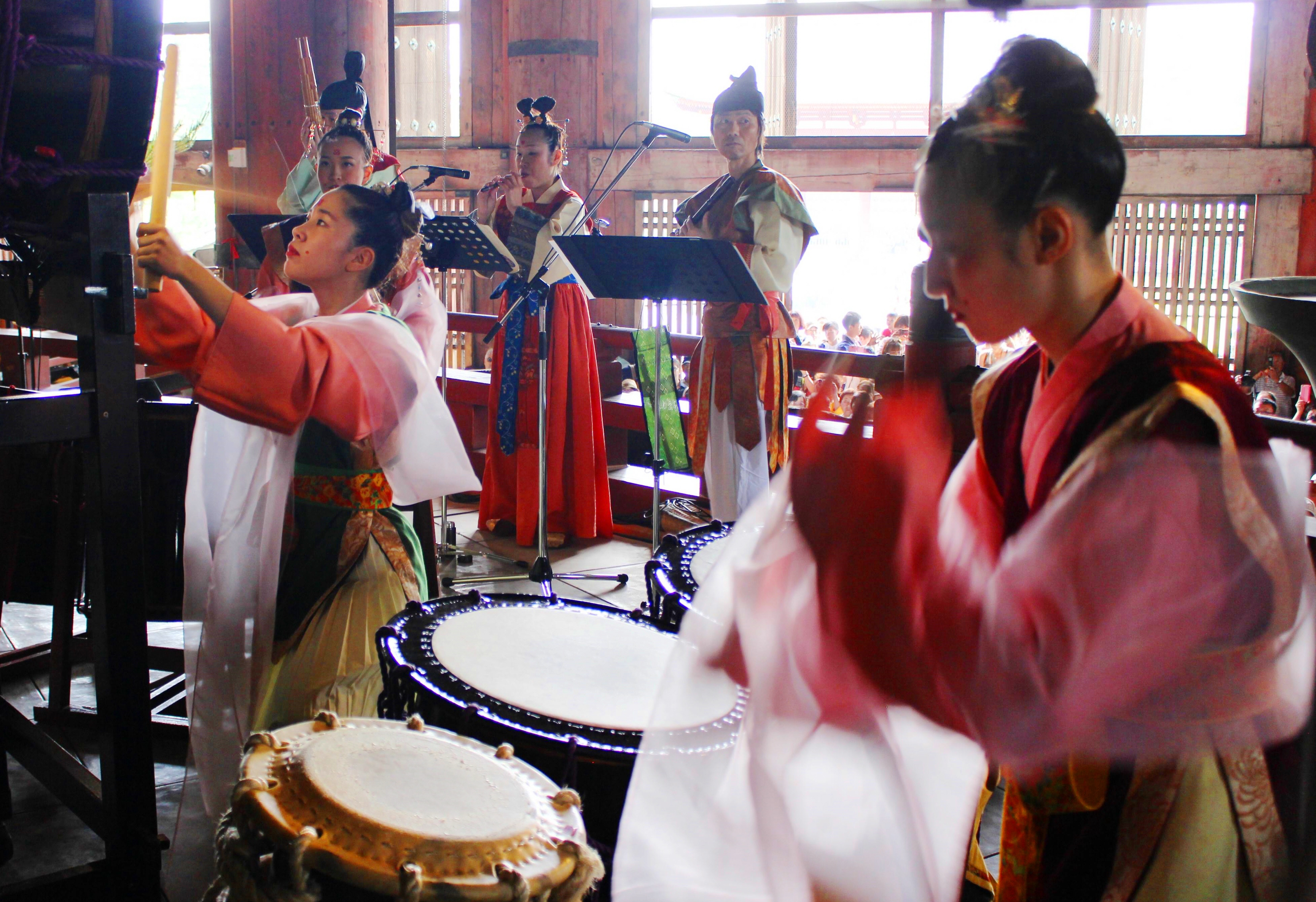 県内各地の社寺や文化ホールなどを会場にする音楽イベント「ムジークフェストなら2016」が11日開幕した。オープニング会場の東大寺大仏殿(奈良市)では、雅楽や和太鼓の演奏が披露された。イベントは26日まで。