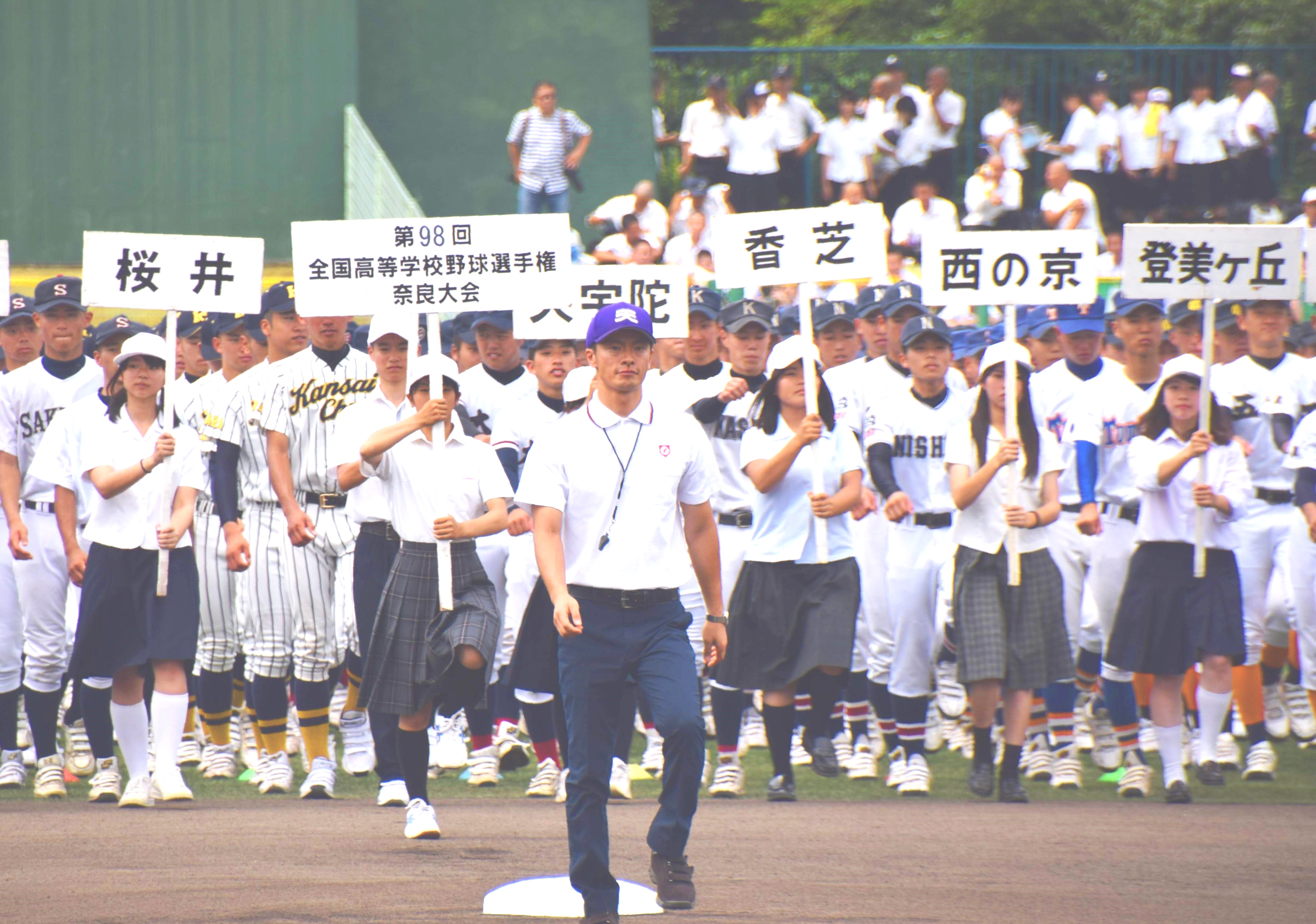 この日は開会式と1回戦2試合が行われ、開幕戦の第1試合では橿原が十津川を五回コールドで圧倒。第2試合は、大和広陵が添上との接戦に競り勝った。