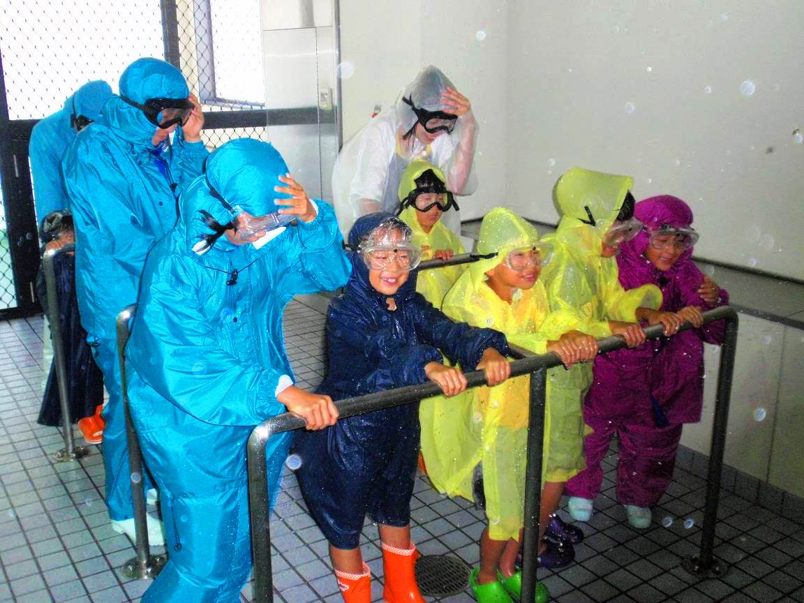 担当者は「実際の台風と同じレベルの暴風雨を体験し、すさまじさを感じてほしい」としている。