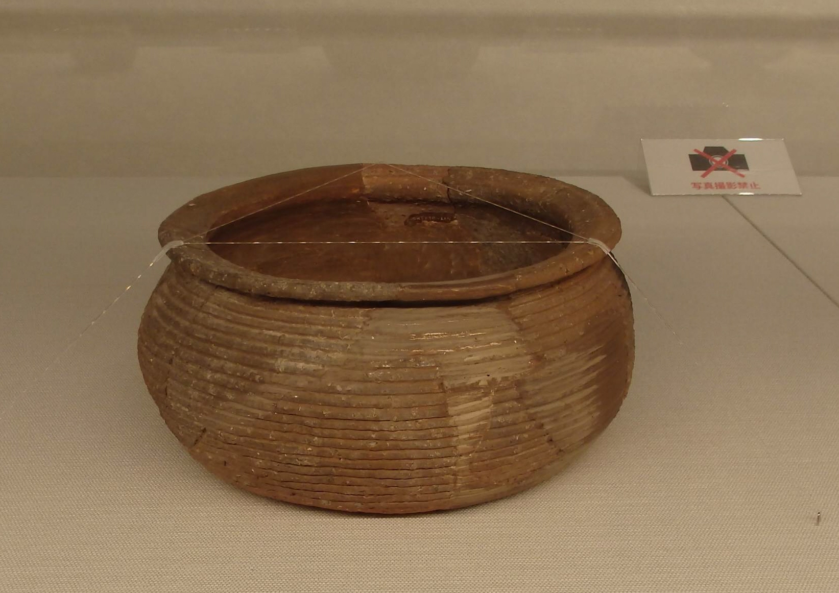 展示されているのは、京都と堺市の遺跡で出土した茶碗や、茶碗をすすいだ水を入れる容器「建水(けんすい)」、花入など計38点。茶碗では、黒い楽焼や瀬戸焼の茶碗、白い美濃の「志野焼」の茶碗などを見ることができる。展示品の中には京都市指定文化財となっている物もあり、公家や町衆による京都の茶の湯文化の一端を知ることができる。