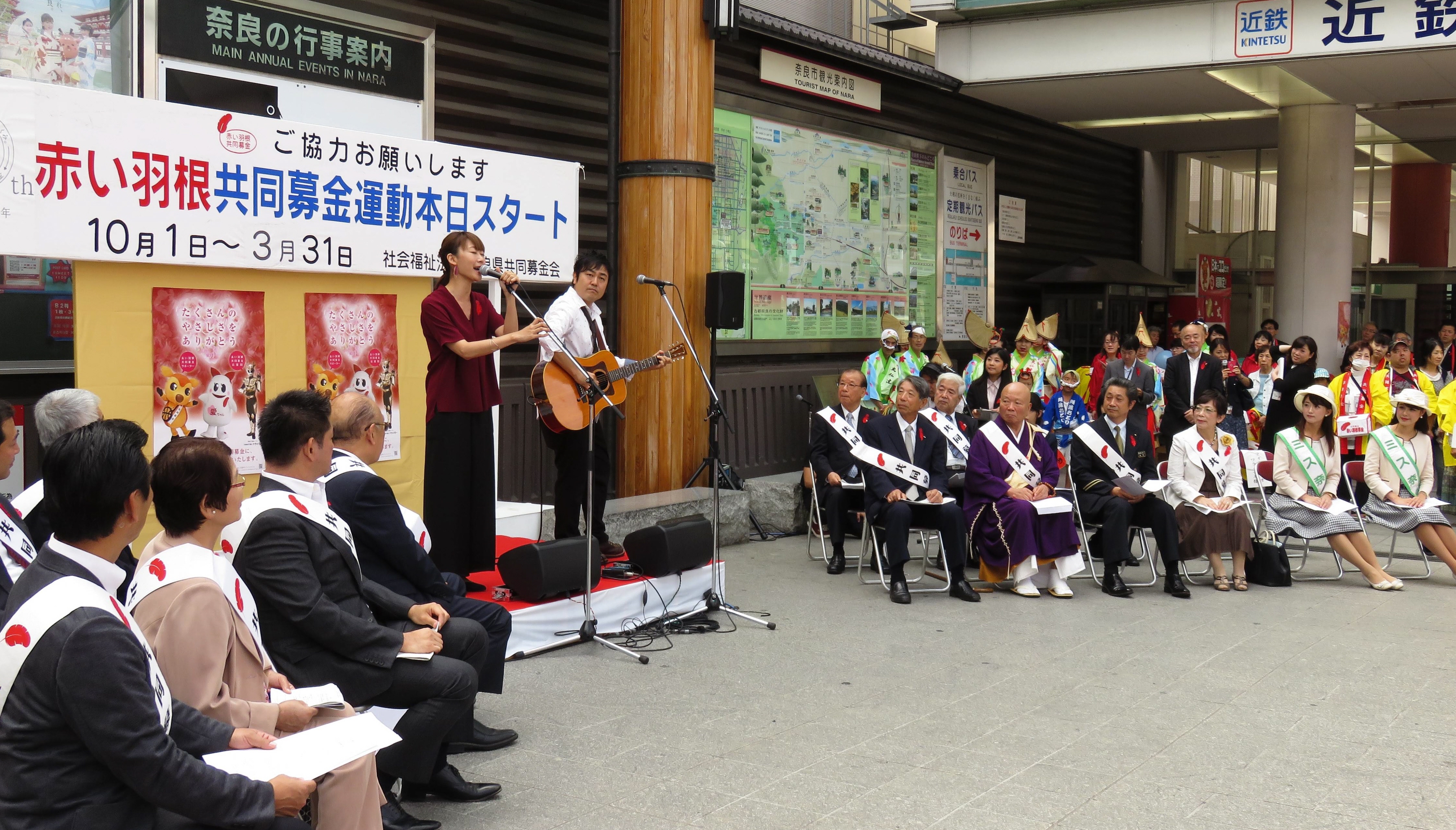 赤い羽根共同募金県内でもスタート 近鉄奈良駅前でセレモニー