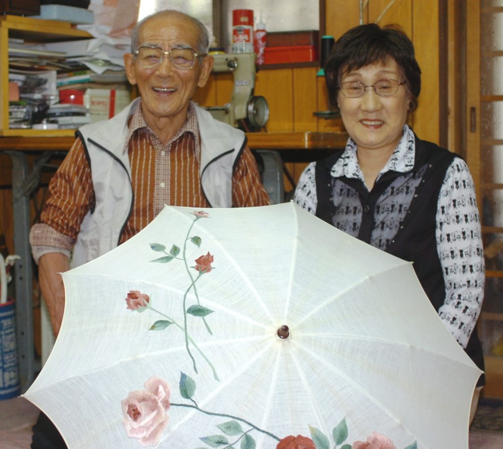 台湾で生まれた仁史さんは昭和36年、千枝子さんと見合い結婚。和裁の心得があり、手先が器用だった千枝子さんも作業を支え、最盛期の昭和40~50年代には週に最大130本もの傘を製作したという。