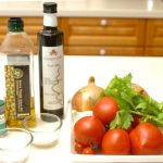 トマトソース トマト中玉5個、ニンニク2片、玉ねぎ小玉1個、オリーブオイル大さじ5、セロリの枝分かれしている葉の部分2本、砂糖大さじ1、塩小さじ½、オレガノ適量《アレンジ用》パスタ、魚介類、フレッシュバジル各適量