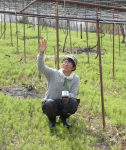 天理市にある木谷さんのブドウ畑。たった一人で一本一本、急斜面に苗木を植えていく。約3500平方㍍の敷地を考えれば、気の遠くなるような作業だ。「暑い日は辛いけれど、ブドウが成長していくのを考えると楽しみ。友人が手伝いに来てくれることもあるんです」。重労働にも表情は明るい。