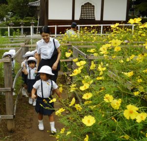 桜井市の安倍文殊院に、約30種のコスモスが咲き誇る「コスモス迷路」がお目見えし、幼稚園児や親子連れらが通り抜けながら歓声を上げている。