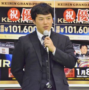 先月30日に静岡競輪場で行われた競輪の実力日本一を決める「KEIRINグランプリ(GP)2018」でGP初優勝を飾った三谷竜生選手(31)=日本競輪選手会奈良支部=の優勝報告会が8日、奈良市の奈良競輪場で行われた。