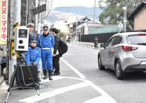 初日となった15日の取り締まりは午前7時半から奈良市北袋町の市道で実施。小学校の通学路に可搬式オービスを設置し、県警交通指導課や奈良署の警察官らが目を光らせた。今後は県内各地で順次、可搬式オービスによる取り締まりを展開する。