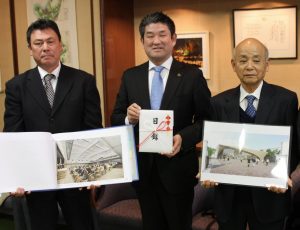 耐震化に伴い、建て替えが計画されている奈良市立一条高校(法華寺町)の新講堂の設計図が完成し、同市役所で贈呈式が行われた。