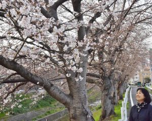 サクラの名所、佐保川で咲き始めたソメイヨシノ=奈良市大宮町