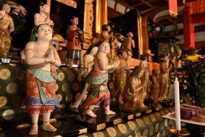 法要が営まれている間、本堂の十一面観音菩薩像(国宝)の前に並べられた高さ約30㌢の愛らしい善財童子を見ることができる。