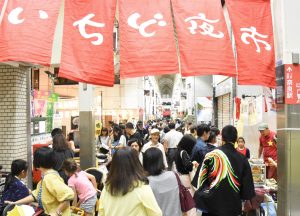 昨年、もちいどのセンター街で開催された「もいちど夜市」の様子=奈良市