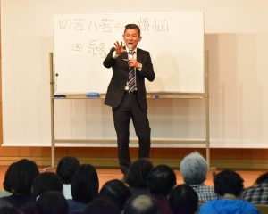 聴講した王寺町の主婦(52)は「仏教という取っつきにくい話題を分かりやすく、おもしろく講演していただけて楽しかった。平成の最後にいいイベントに参加できてよかったです」と笑顔で話していた。