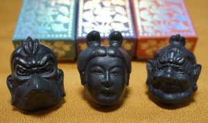 3種類の伎楽面をモチーフに、香るインテリアとして開発された奈良墨。左から「迦楼羅」「呉女」「力士」=奈良市