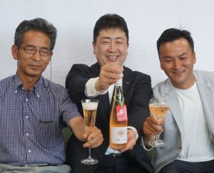 実行委員長を務める泉屋の今西栄策社長によると、2年前に3種類の県産イチゴでスパークリングワインを試作したところ、古都華の風味が際立ち、商品化に向けた機運が一気に高まった。コトカ カンパニーの萩原健司さんは「古都華の風味がしっかり残っていて、生産者としてすごくうれしかった」と振り返る。