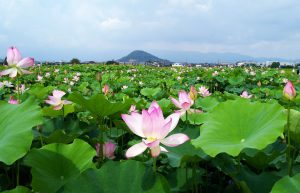 藤原宮跡のハス、見頃迎える