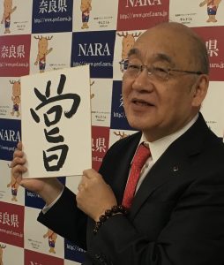 荒井正吾知事は年内最後となった今月25日の定例記者会見で、今年を表す漢字に「知事が選ぶ今年の漢字は「嘗」」を選んだと発表した。11月に行われた皇位継承に伴う祭祀「大嘗祭」から採られ、大嘗祭の原型が奈良にあると実感したことが決め手になったという。