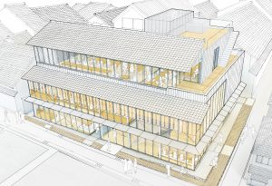 施設は3階建てで、古民家が立ち並ぶ奈良市元林院町に建設される。敷地面積は約419平方㍍。東大副学長を歴任した建築家、内藤広さんが設計を手掛け、開放的なガラス窓と