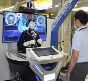 同駅ではこの日、案内ロボット2台の運用がスタート。大型の「アリサ」が改札内、小型の「リン」が改札外にそれぞれ設置され、乗車・乗り換えや駅周辺などの案内に4カ国語で対応する。女性の姿で対話も可能な「アリサ」は、特に駅構内の店舗情報に詳しく、記念撮影にも応じる。