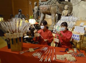 希望者はスマートフォンなどで寺のHPにアクセスして品物を選び、代金は画面上でクレジットカード決済。品物は郵送で送られてくる。縁起物の授与開始は例年、11月1日だが、参拝者の分散化をはかるため今年は1カ月早めた。