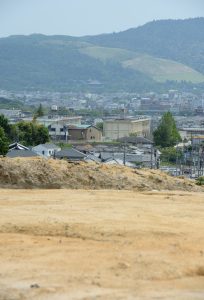 菅原遺跡の位置は、行基が亡くなった菅原寺から西へ約1㌔の丘陵上だ。調査した元興寺文化財研究所によると、遺跡の標高は107㍍(平城宮跡は70㍍前後)で、真東に臨む東大寺大仏殿とほぼ同じ高さ。遺跡と東大寺は、平城京の東西のメインストリート「二条大路」で結ばれていたと想定されるという。