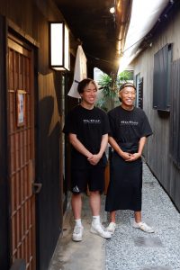 メニューにも工夫を凝らしたと話す西奈槻さん(左)と奥野亮太郎さん‖奈良市