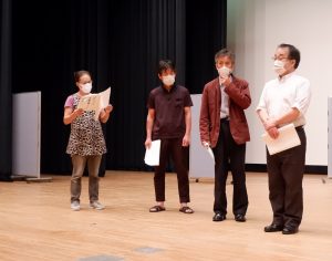 公演に向けて練習する劇団いかるがの団員たち=斑鳩町