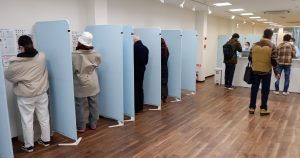 PCR検査センターで必要な唾液などを採取する利用者ら=奈良市