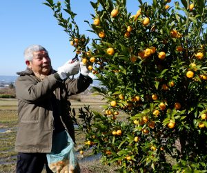 日本固有のかんきつ類の一種で、奈良にゆかりの深い「大和橘」の収穫作業が天理市柳本町で行われた。飲食店や菓子メーカーなどに出荷される。