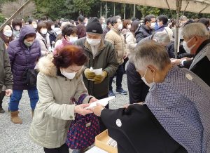 節分「豆まき」せず手渡しで 大神神社