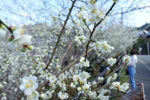 国の名勝に指定されている奈良市月ケ瀬の月ケ瀬梅渓で、梅の花が見頃を迎えた。紅梅や白梅、しだれ梅などさまざまな品種の約1万2千本が、甘酸っぱい香りを漂わせている。