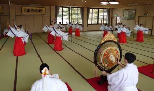 「神事の華」とされ、太鼓と琴の演奏に合わせて、祭典や結婚式で最も舞う機会が多い「浦安の舞」を繰り返し練習した。