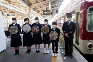 電車に児童生徒デザインのヘッドマーク 近鉄天理線の電化100年記念