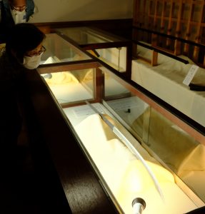 当麻寺別当(住職)の住房として奈良時代から受け継がれた中之坊。薙刀と槍は令和2年秋に宝蔵で発見。約1年をかけ、御所市の刀剣研師、大越明友氏が研いだ。その後、刀剣に詳しい大阪歴史博物館の内藤直子学芸員と刀剣研師の真津仁彰氏が調査し、いずれも室町時代の無銘の大和物と判明した。
