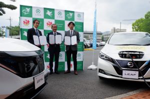 EV活用し地域づくり 上牧町と日産が連携協定