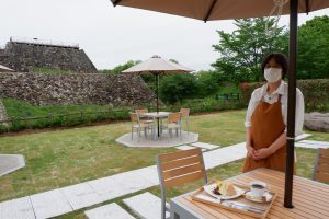 郡山城(大和郡山市)の天守台を目の前に望む好立地に、カフェがオープンした。明治時代から城郭内にあった果樹園の管理人住居を改修した「番屋カフェ」。店長の中村陽子さんは「鳥のさえずりや豊かな自然、天守台の石垣を眺めて往時に思いをはせ、ゆったりとした時間を過ごしてほしい」と話している。