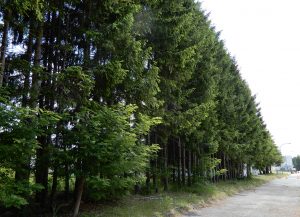 東北自動車道沿いに植樹されているドイツトウヒ(多根井重晴教授提供)